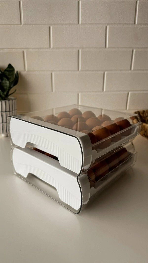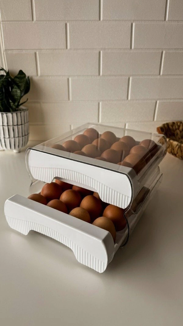 Organizá tu heladera con estilo y practicidad. Esta huevera apilable de dos niveles mantiene tus huevos siempre a mano, protegidos y en orden. Diseño compacto, con cajones deslizables para un acceso súper cómodo. Ideal para cocinas organizadas y estéticas.