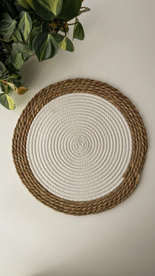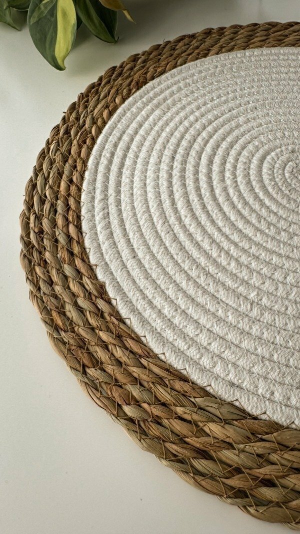 Sumá estilo natural a tu mesa con estos individuales. Usalo como individual, plato de sitio o como base decorativa. Su combinación de centro blanco con borde de yute le da un toque moderno y natural a cualquier mesa o rincón de tu casa.