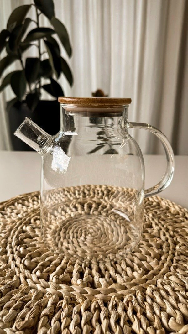 Mantén tus bebidas frescas y libres de impurezas. Esta jarra de vidrio con tapa de bambú es hermética y cuenta con un pico filtrador, ideal para agua, jugos y más.