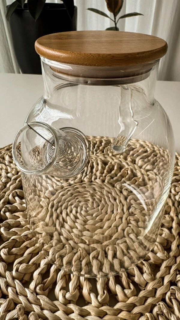 Jarra de vidrio con tapa de bambú hermética y pico filtrador 1.8L