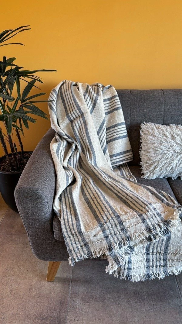 Tejido suave, diseño de rayas y detalles de flecos. Perfecta para sillones, camas o para acompañar tus momentos de relax.