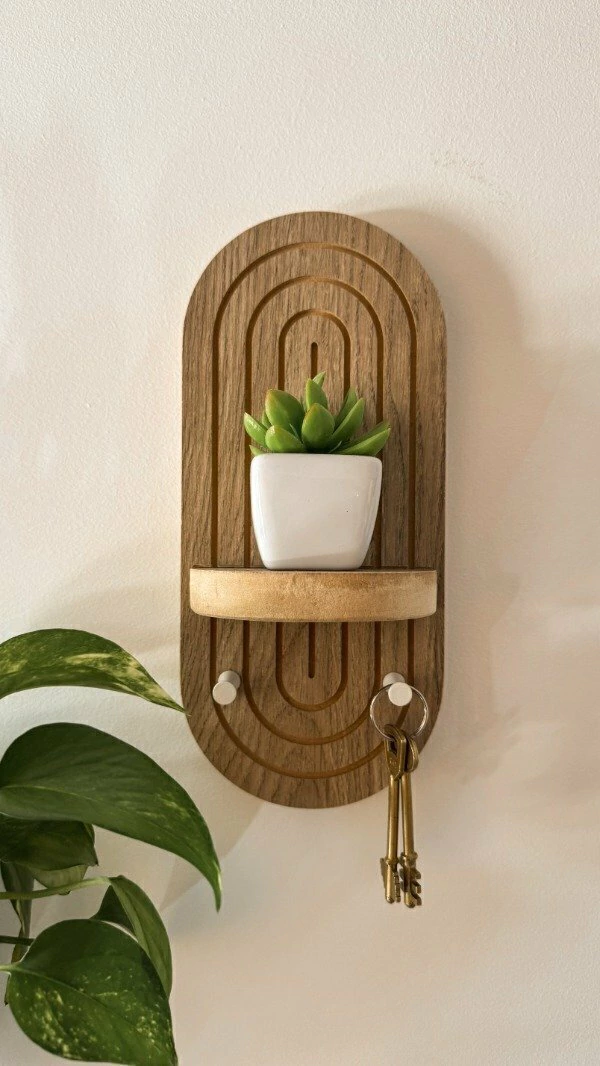 Mantén tus llaves organizadas con estilo. Este porta llaves ovalado, con barillas de madera, añade un toque natural y práctico a tu entrada o pared.