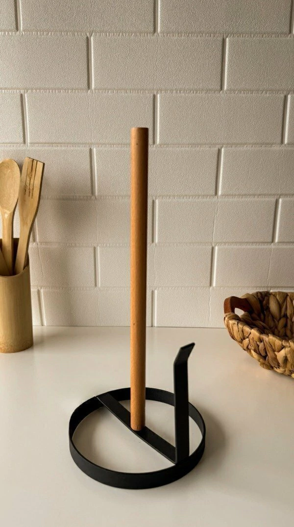 Funcional y decorativo, este porta rollo combina la calidez de la madera con la resistencia del hierro, aportando un toque moderno y rústico a tu cocina.