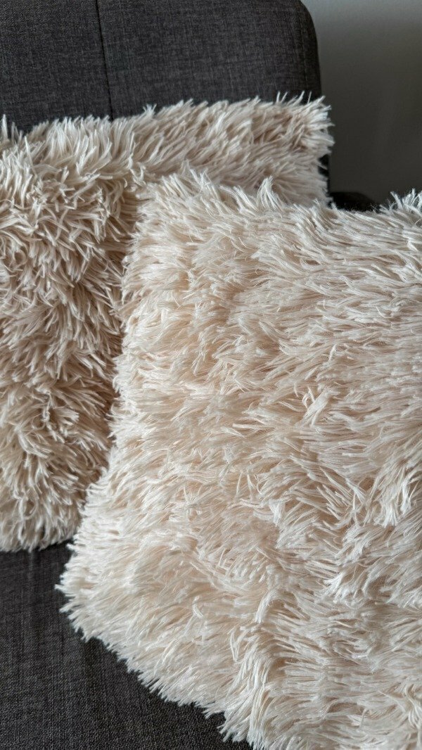 Suaves, abrigadas y con esa textura fluffy que transforma cualquier rincón. Son ideales para el sillón, la cama o ese espacio de lectura que tanto amás. Poseen cierre invisible para que puedas lavarlas fácil y mantenerlas siempre impecables. Sumale un toque cálido y chic a tus ambientes con este dúo que no falla.